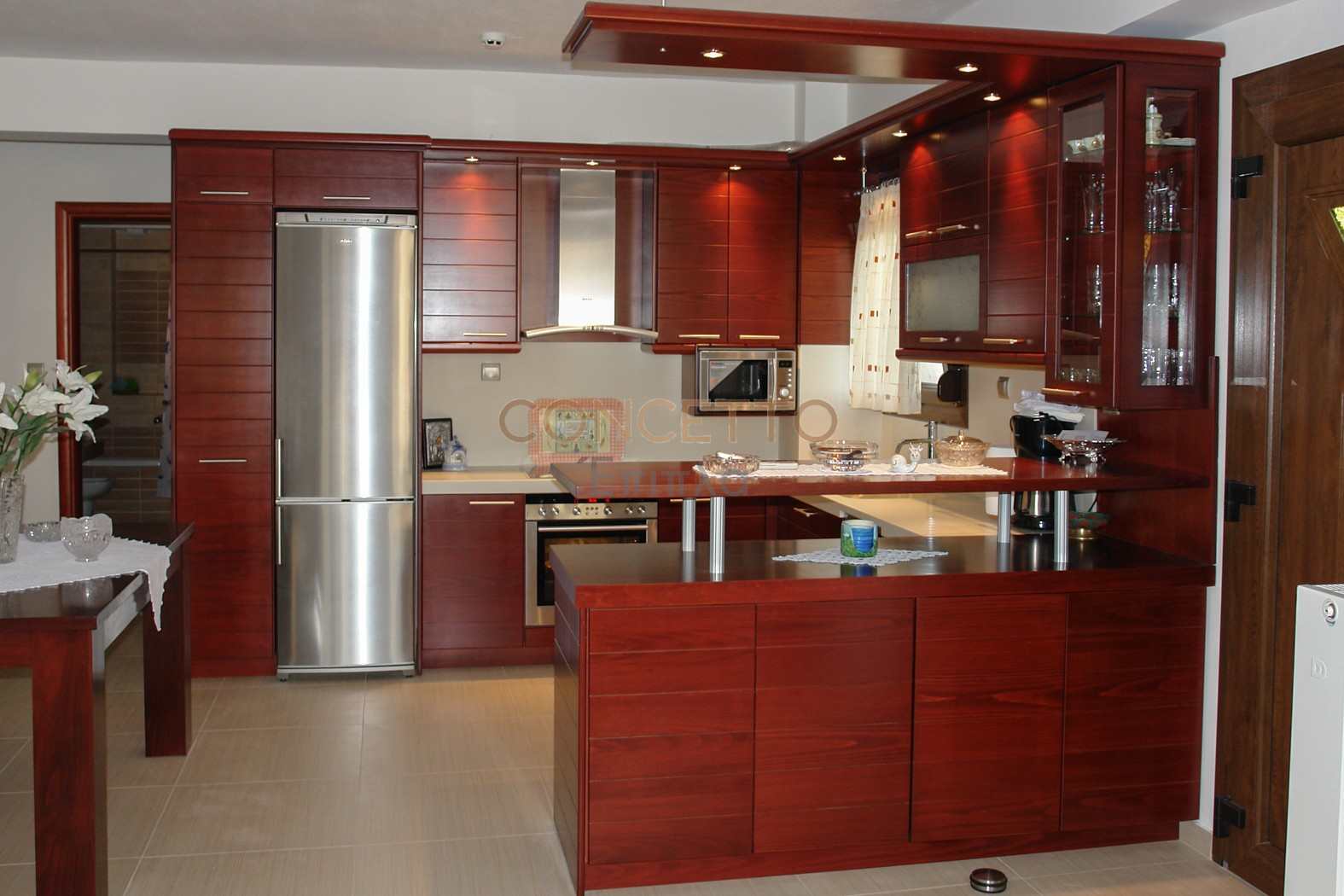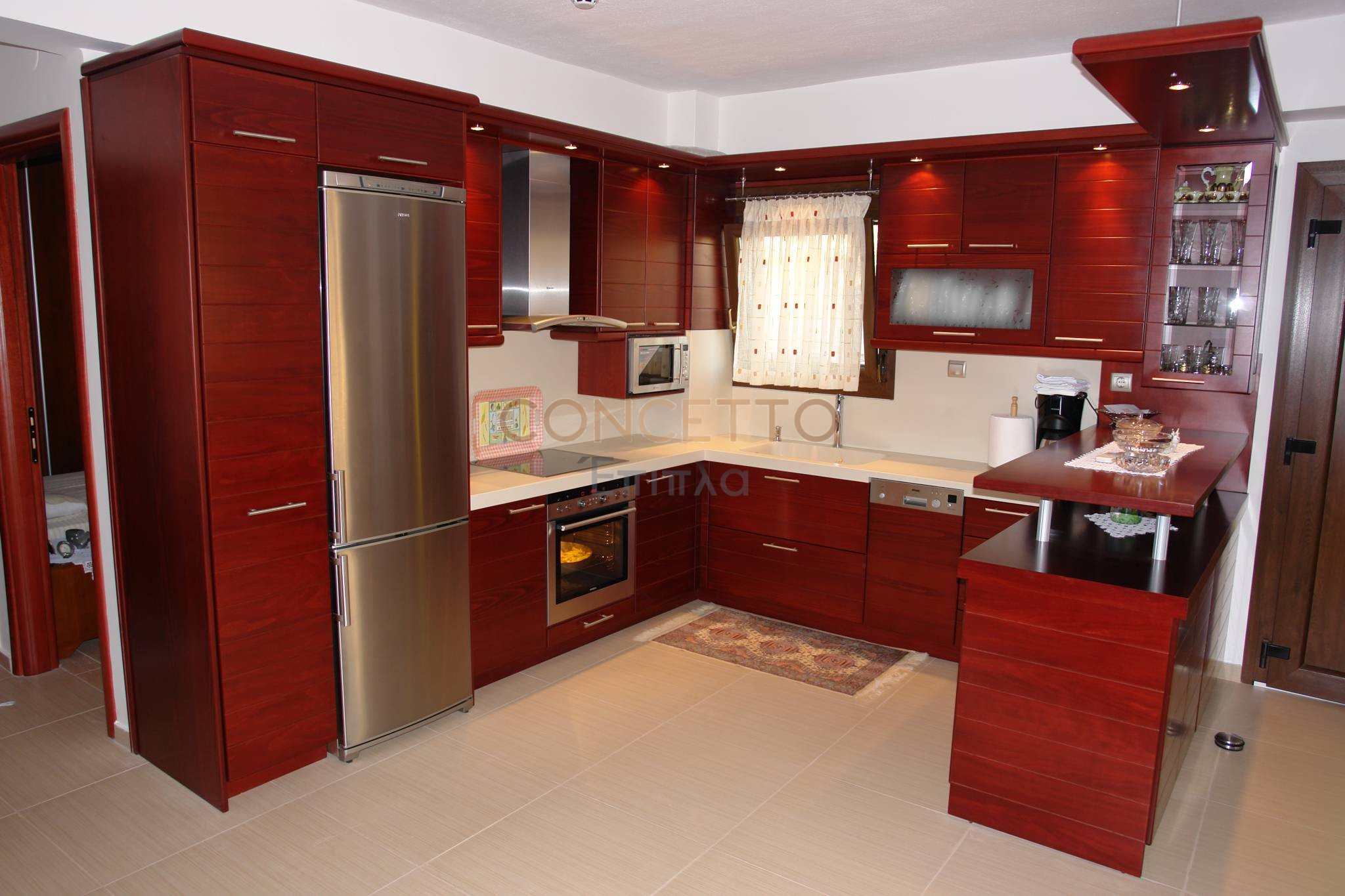 Κουζίνα κατασκευασμένη από ημιμασίφ καπλαμάς δρυς