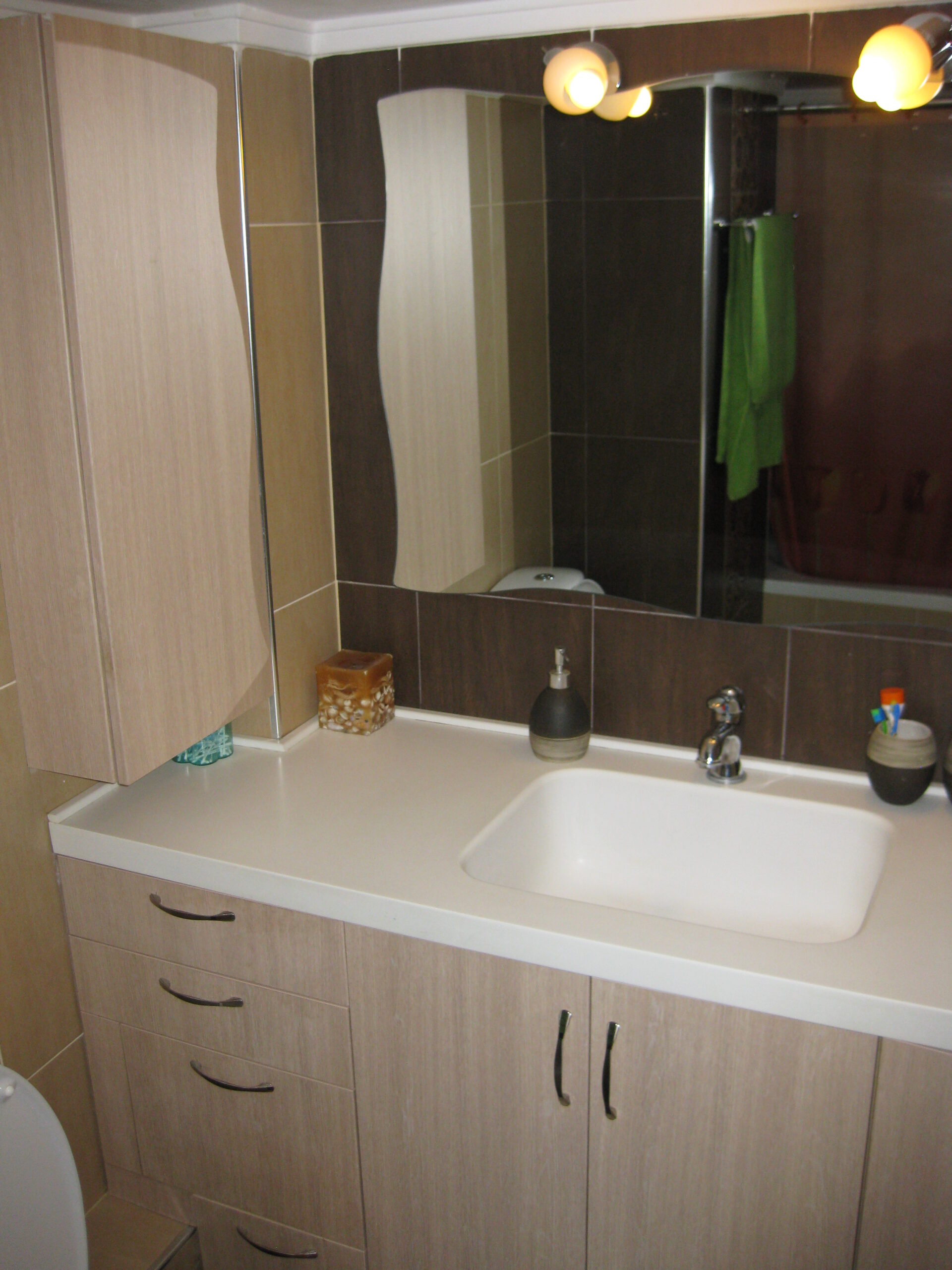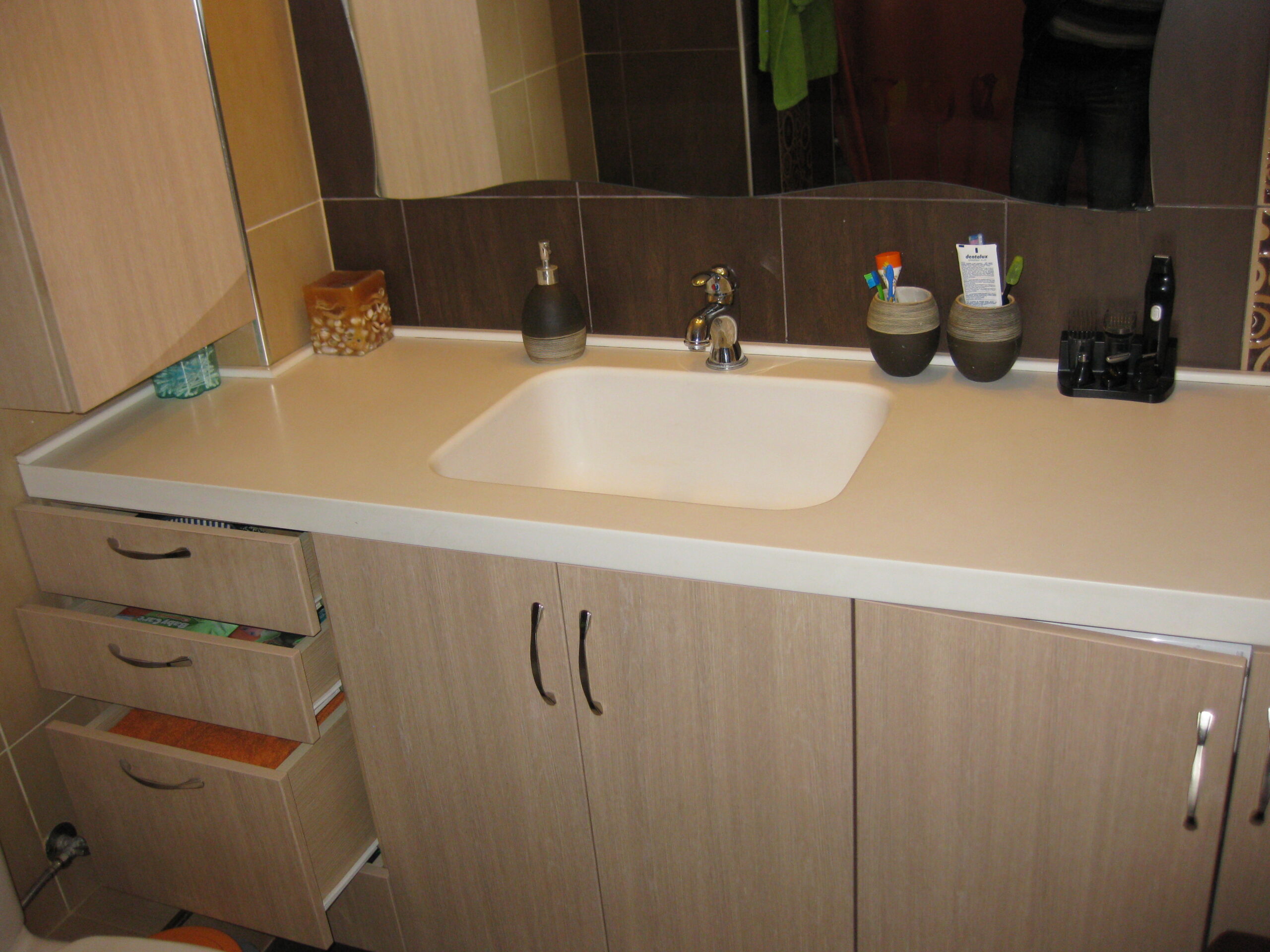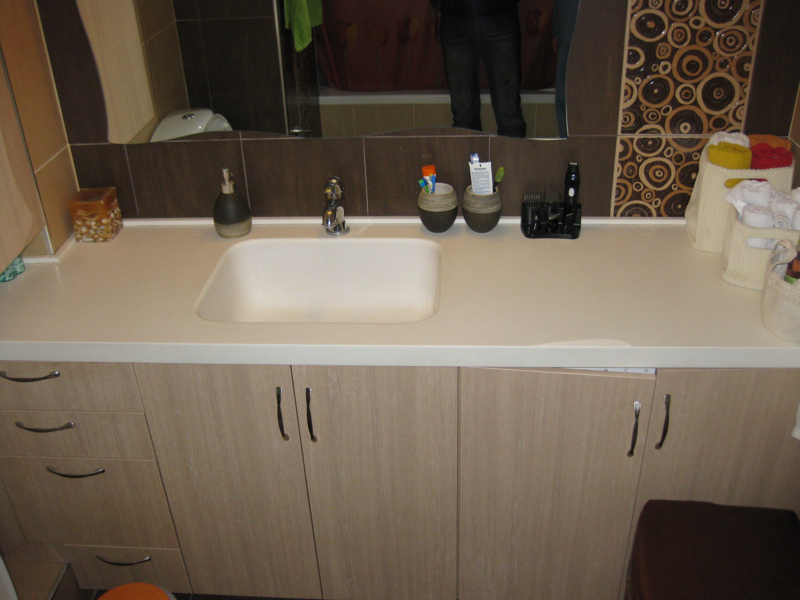 Κατασκευή επίπλου μπάνιου με πάγκο corian και ενσωματωμένο νεροχύτη